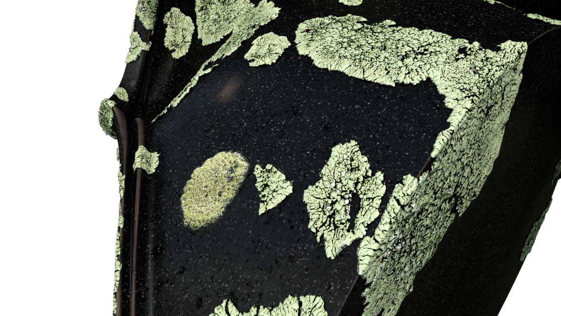 For the sculpture artist Grégoire Scalabre we remodeled one of his sculptures and for presentation purposes we put some lichen on it and integrated the form in a photo.
